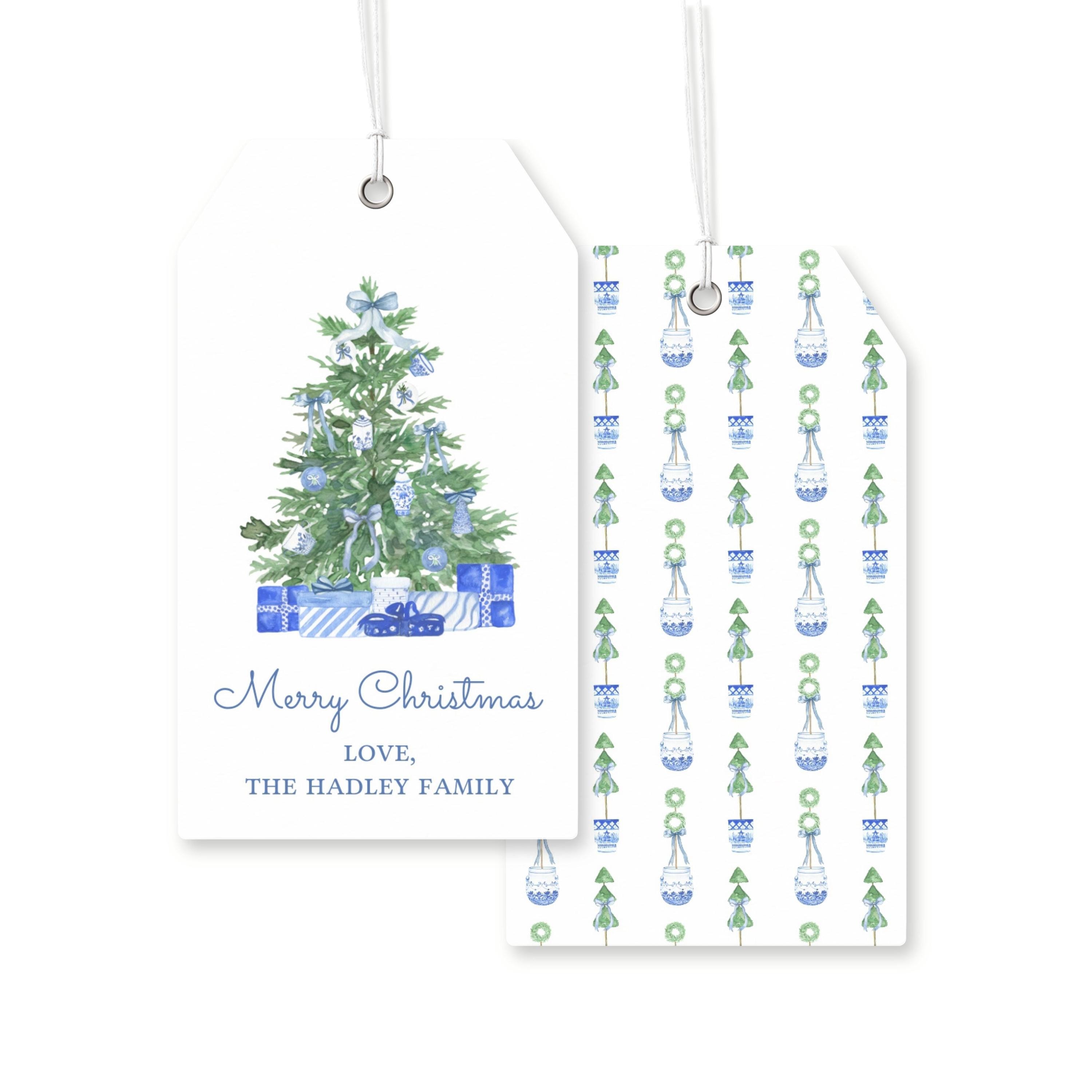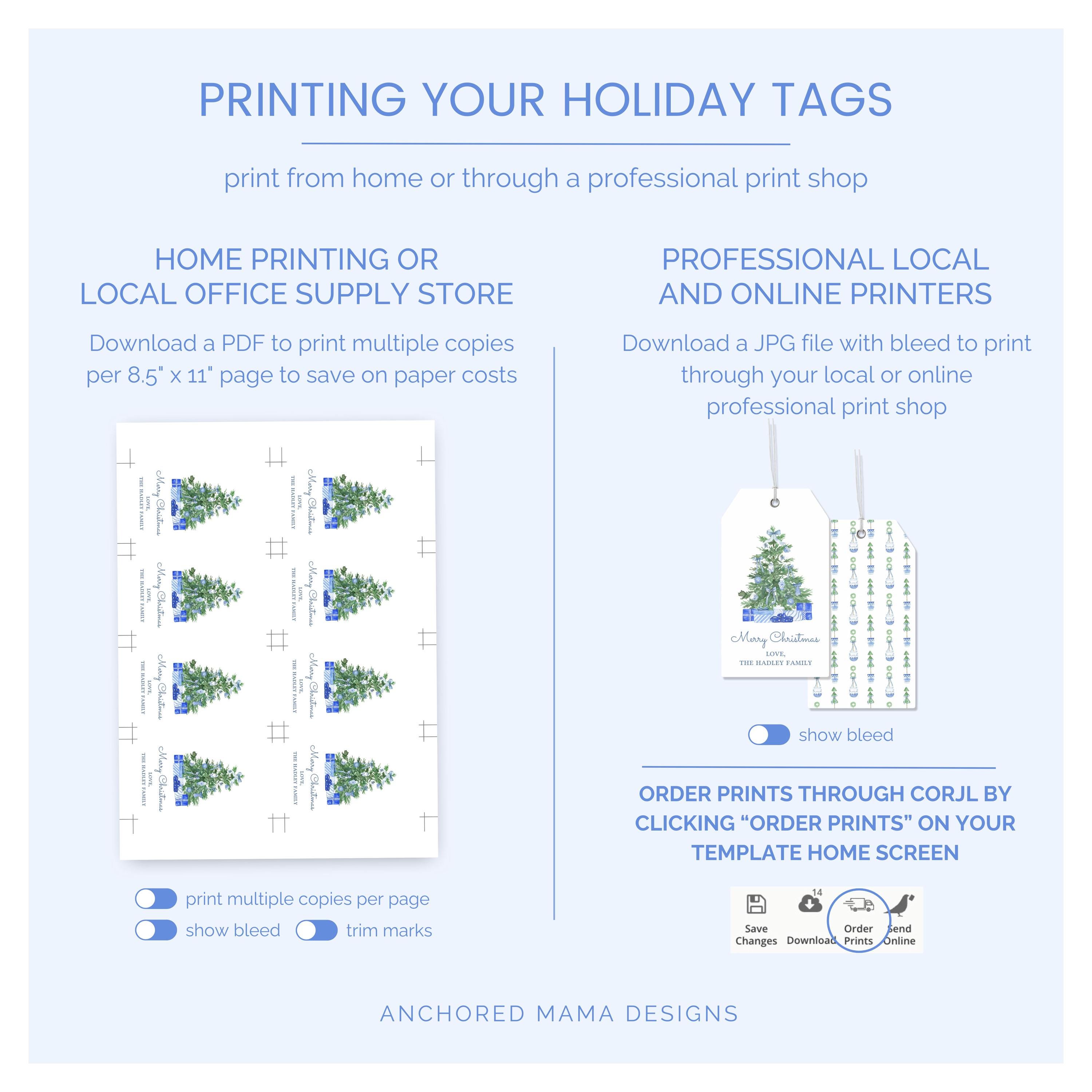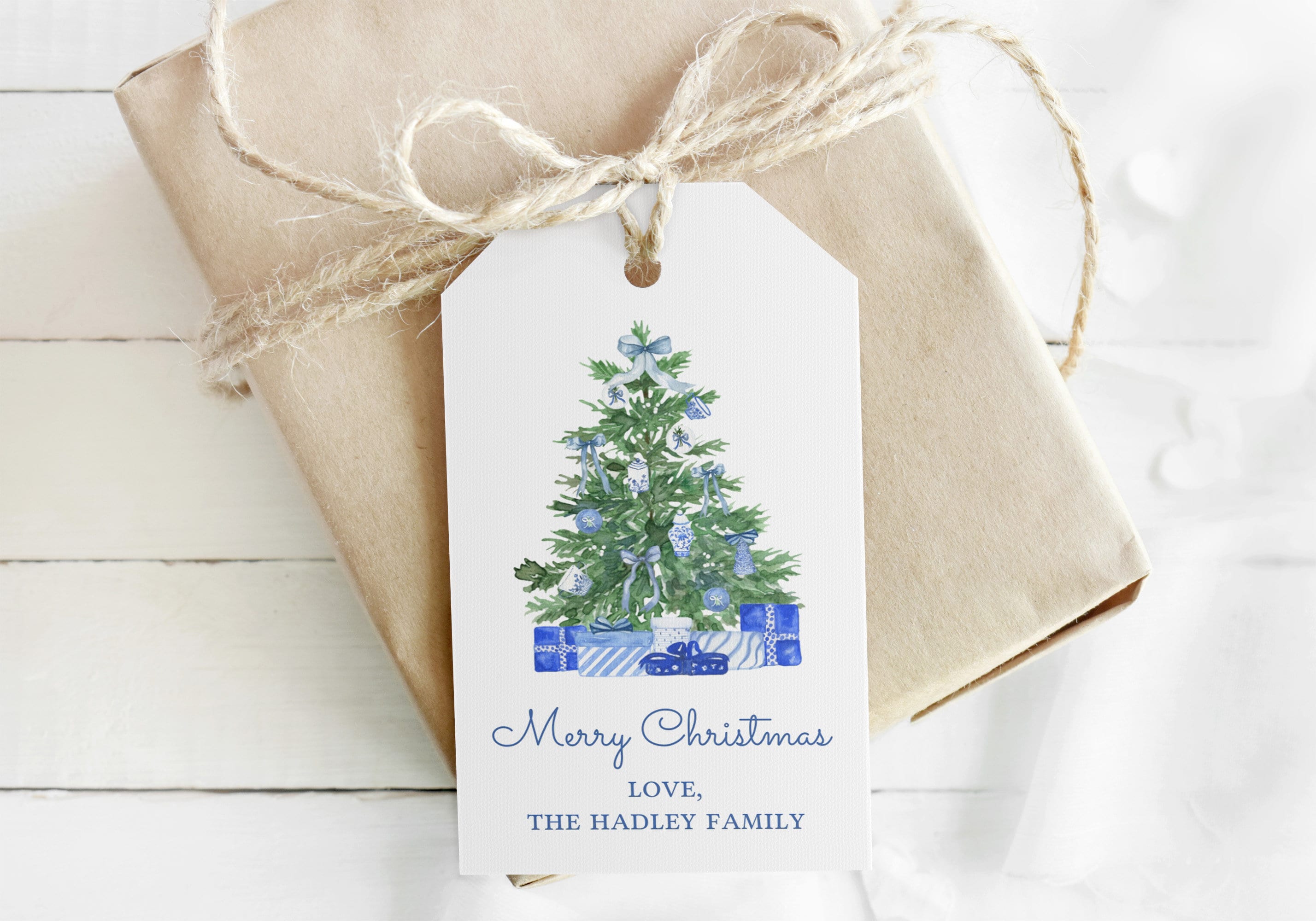 Personalize your printable chinoiserie Christmas tree gift tags to use with your all holiday gifting! This digital download is editable and printable right from home.