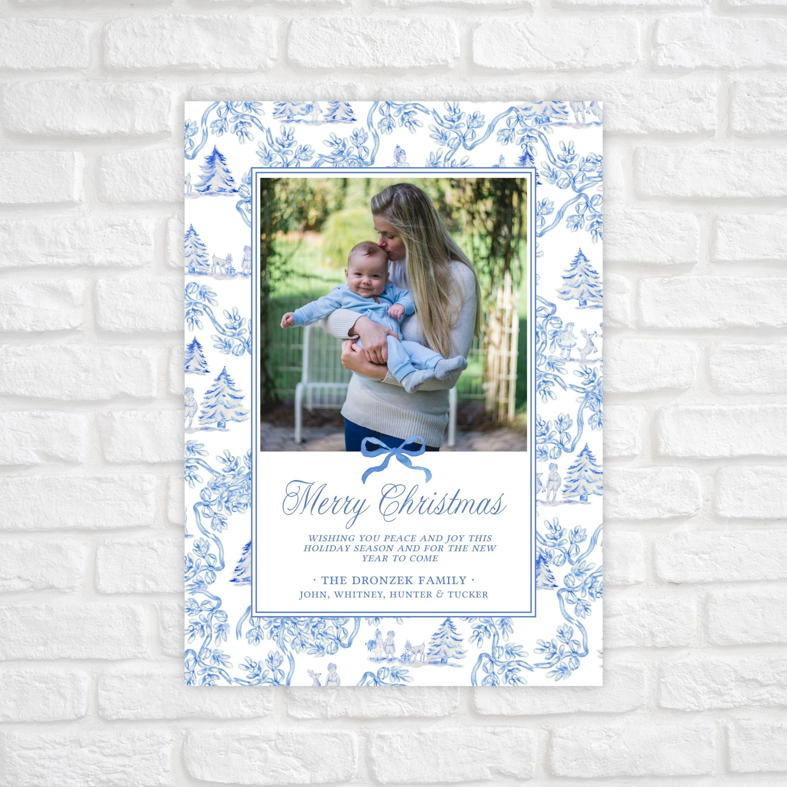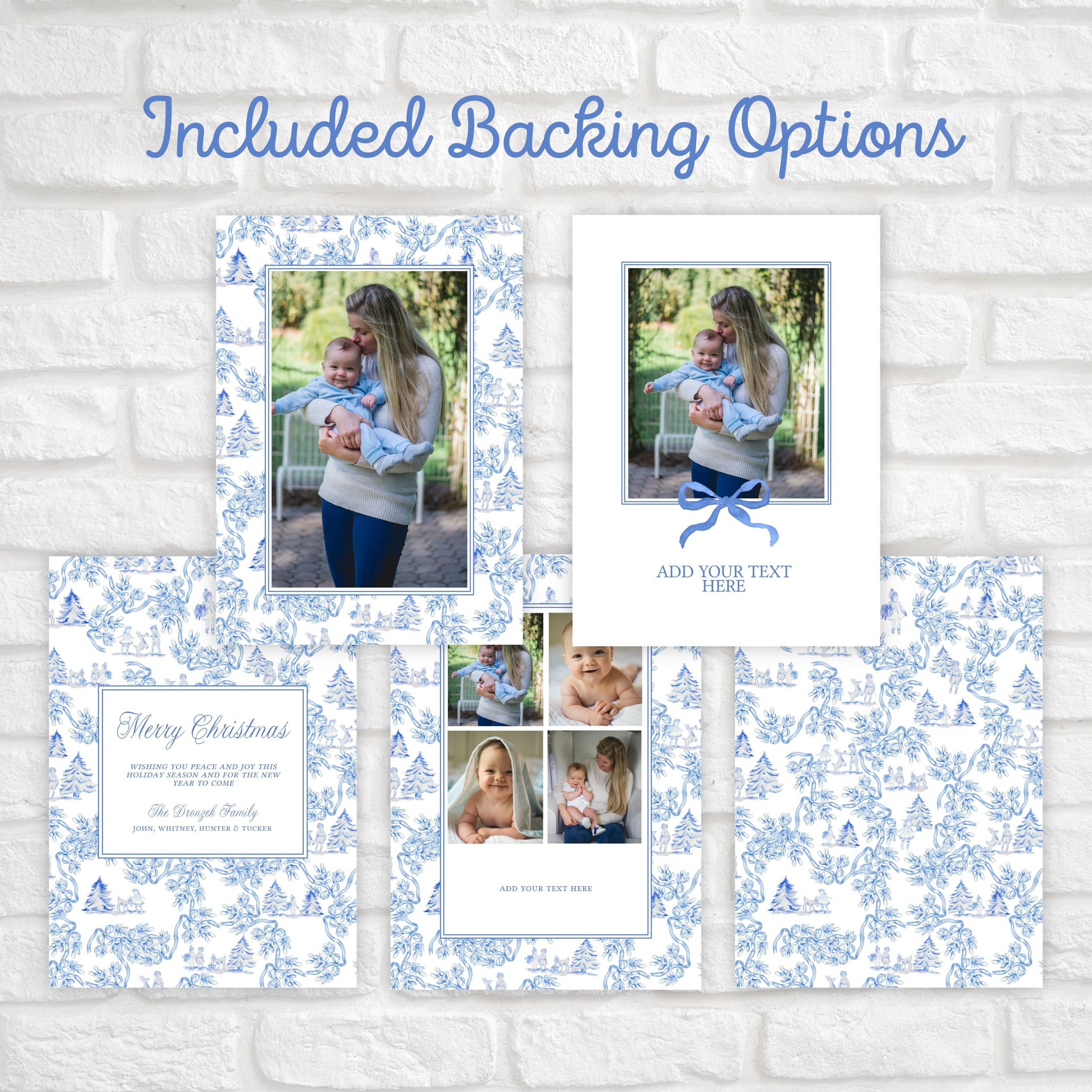 A classic 5" x 7" editable and printable Christmas blue and white winter toile photo card for sending out to all your family and friends! Multiple backing options included.