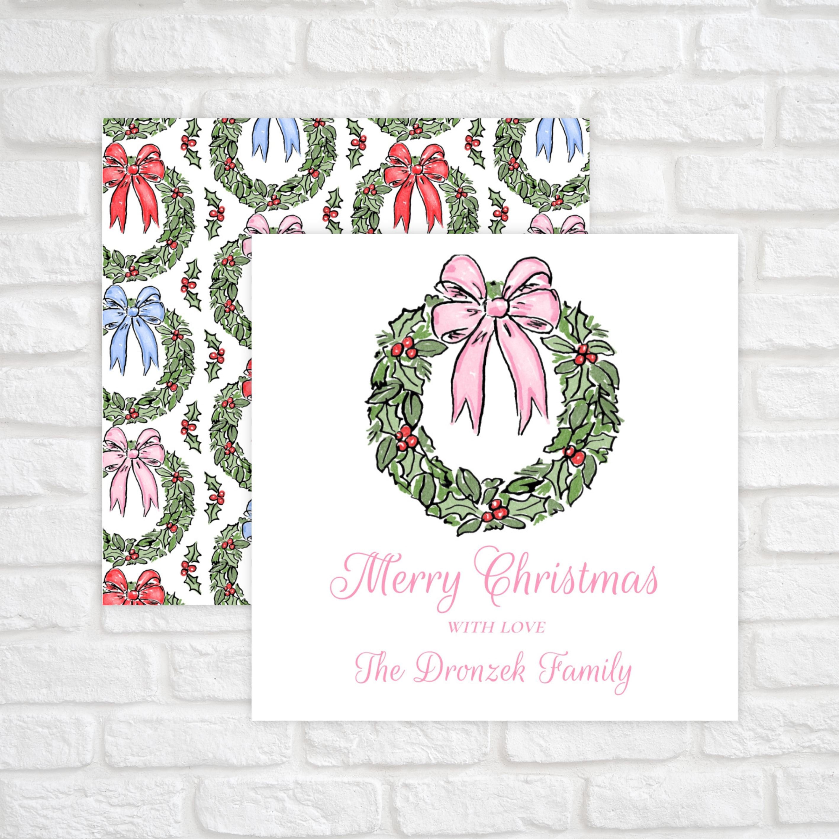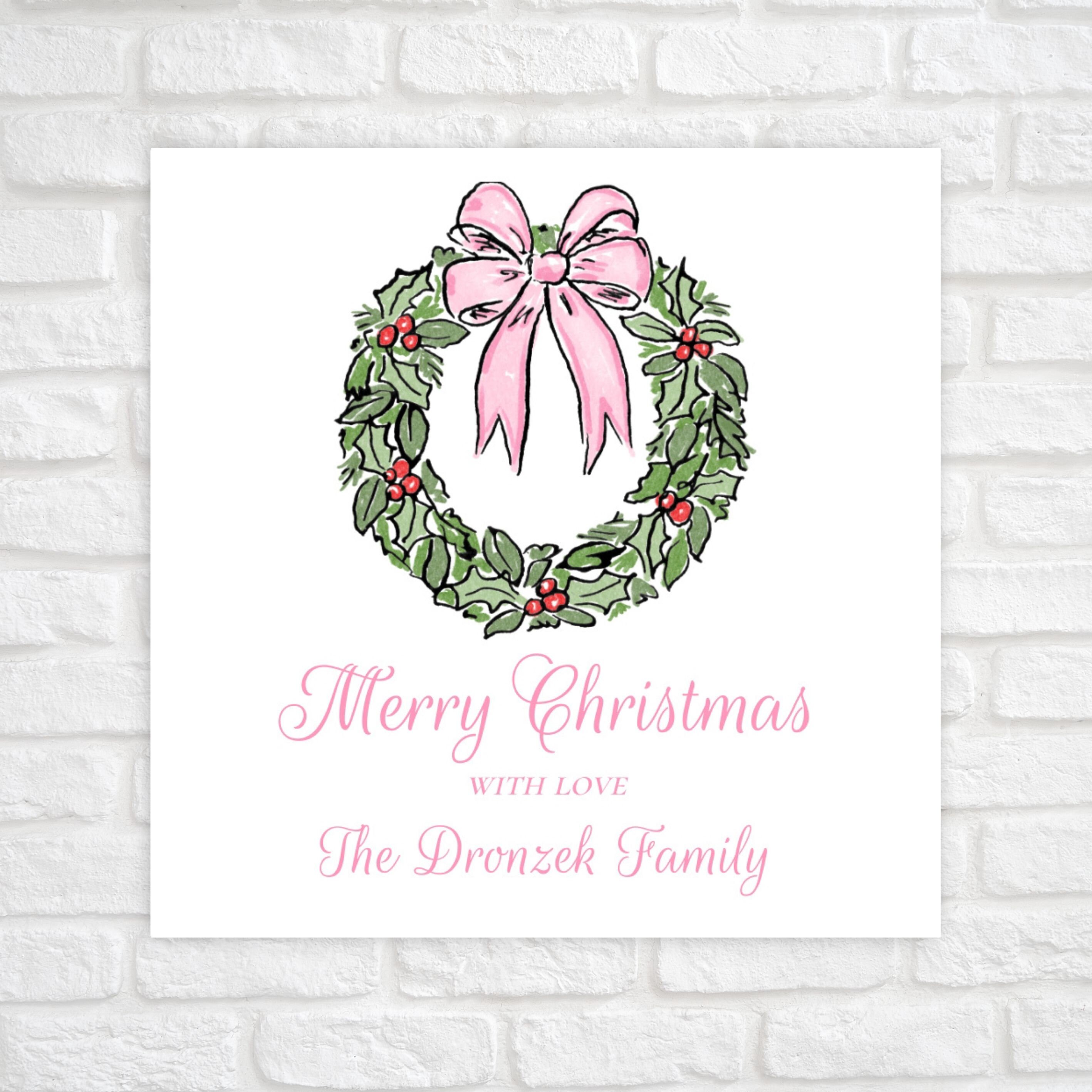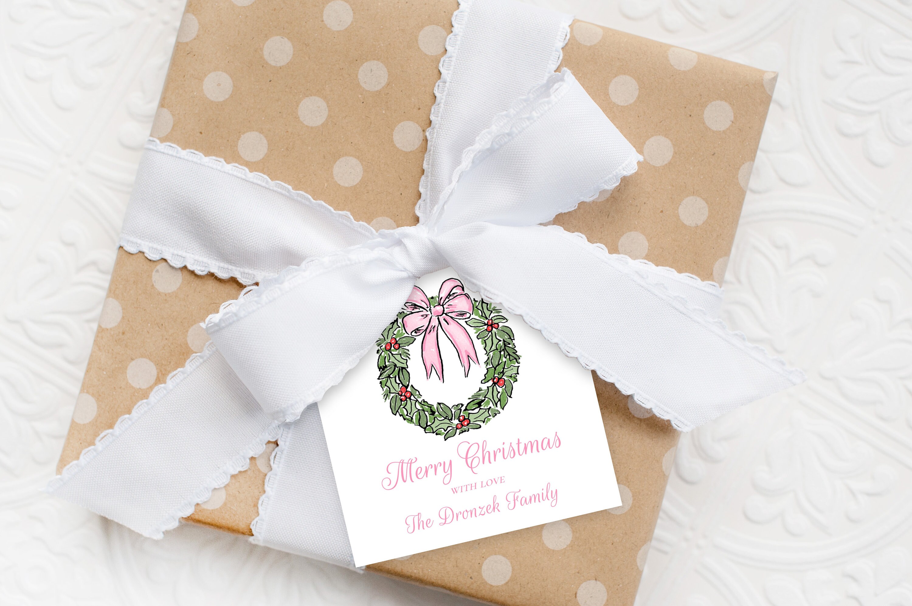 Personalize your pink bow wreath Christmas gift tag to use with your Christmas gifts, classroom treat bags, or gifts from Santa! This digital download is editable and printable right from home.