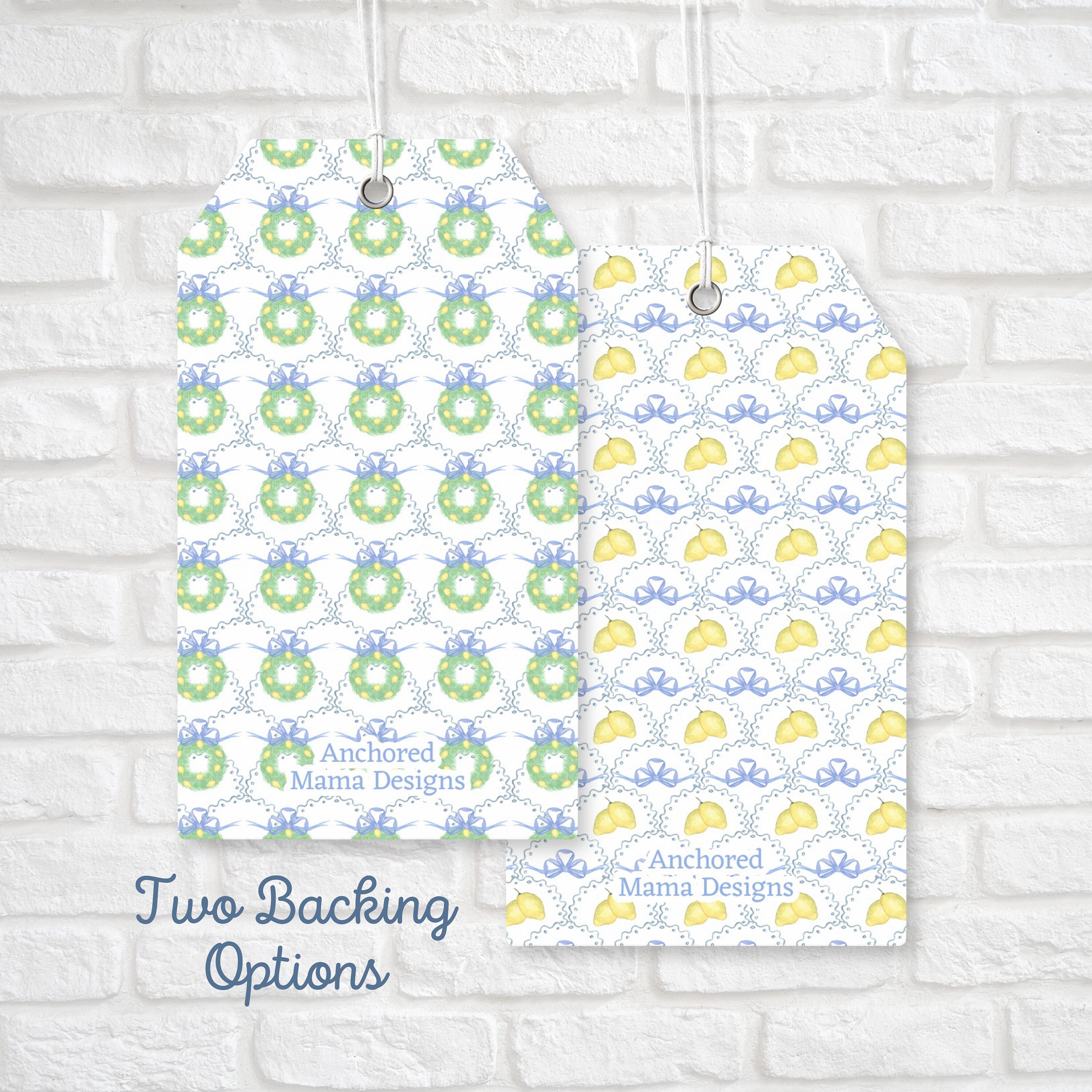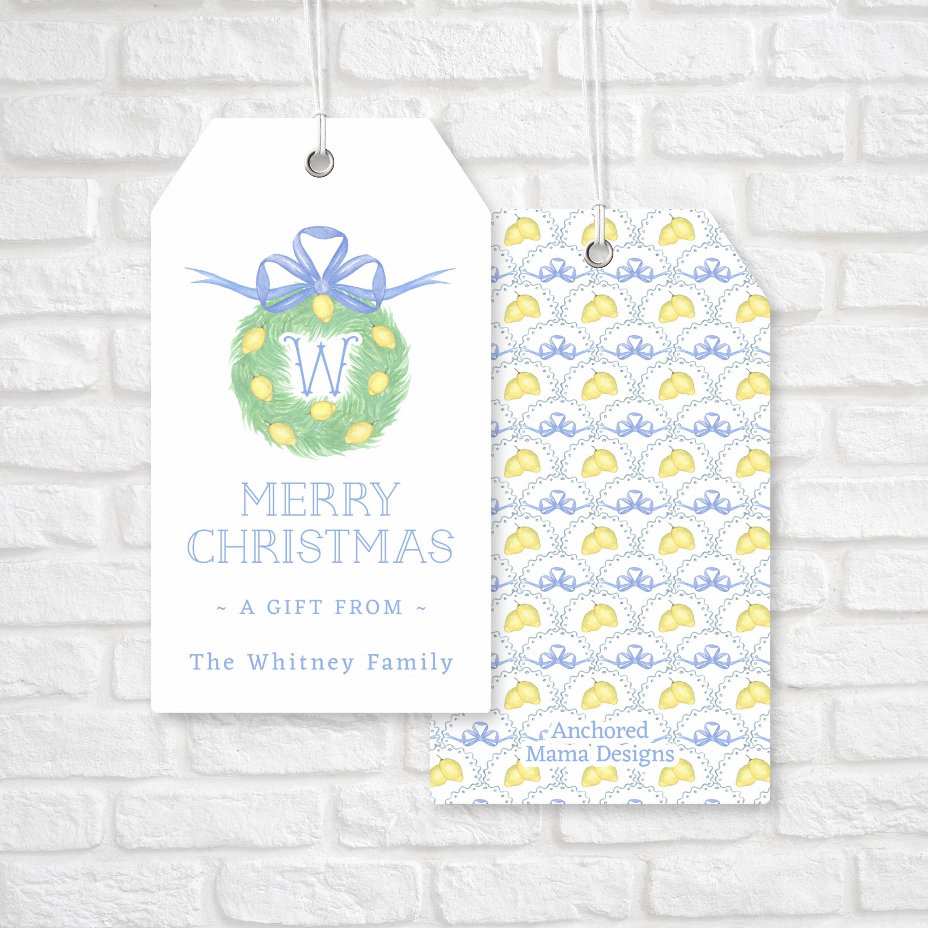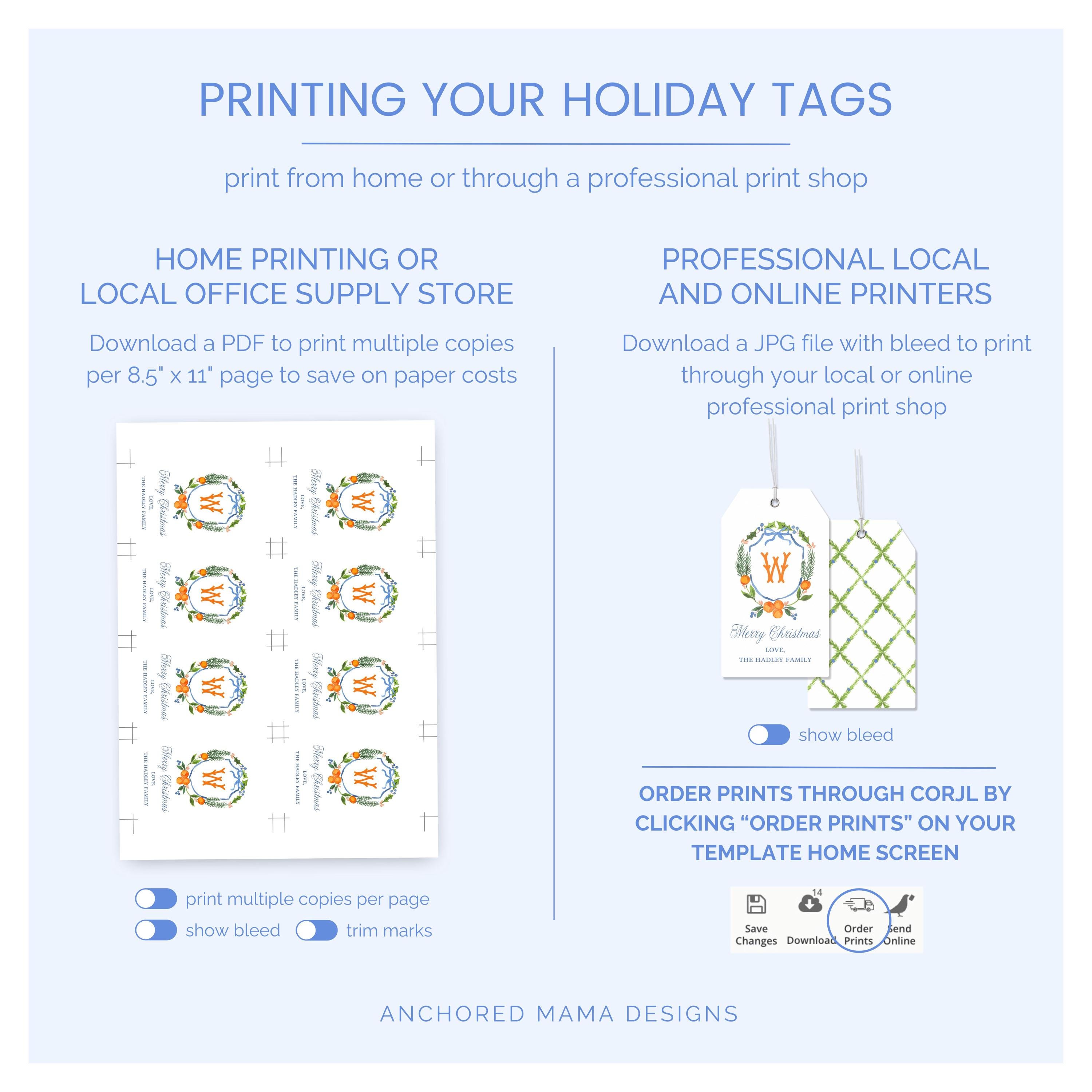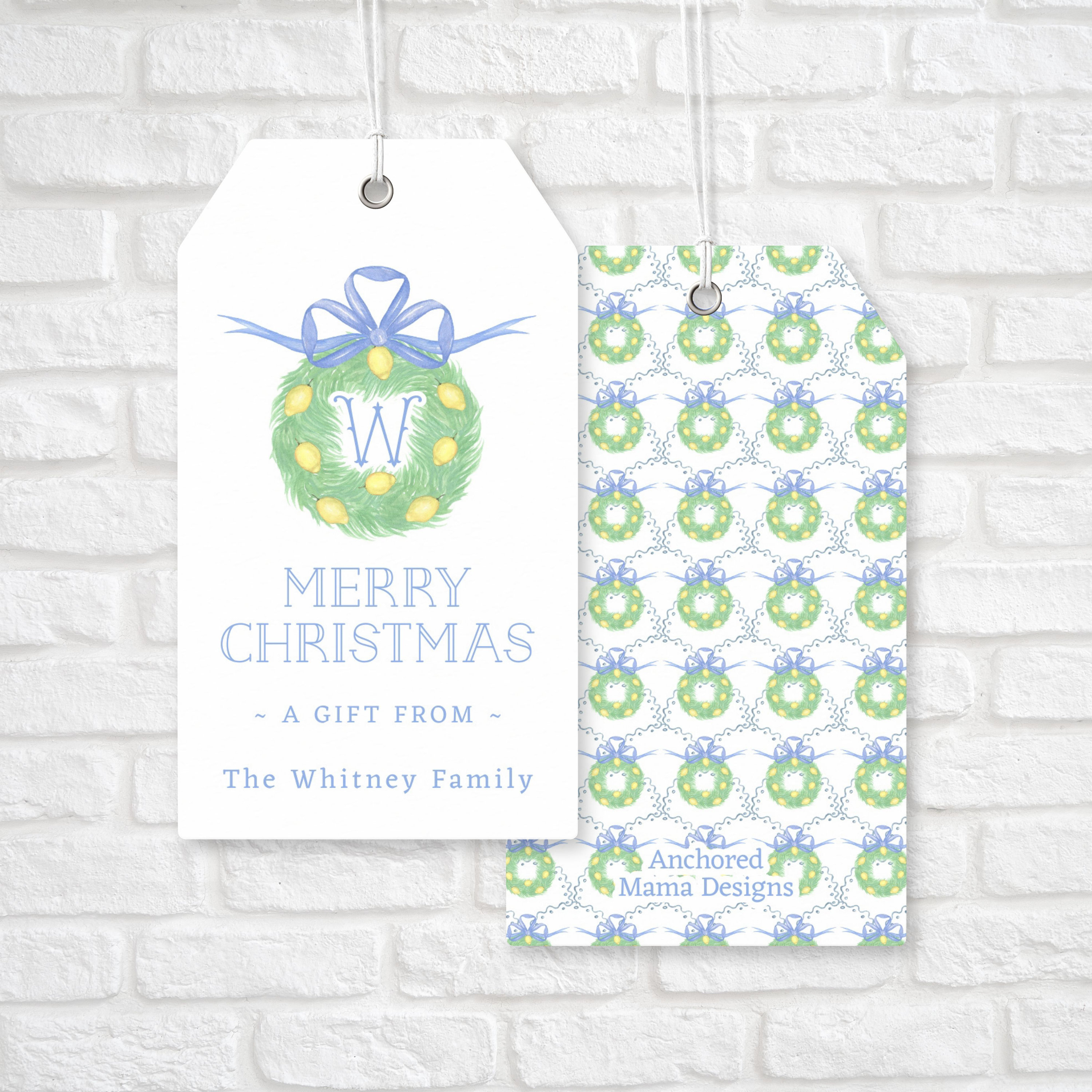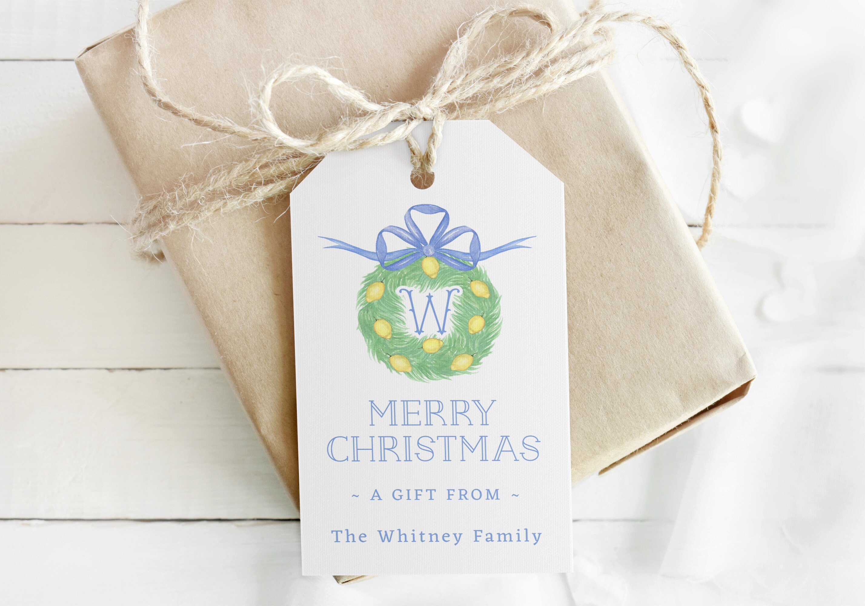 Personalize your printable 2" x 3.5" monogrammed citrus wreath holiday gift tag right from home! Simply edit your tag within minutes of purchase, then download and print. Attach to all your holiday presents this year!