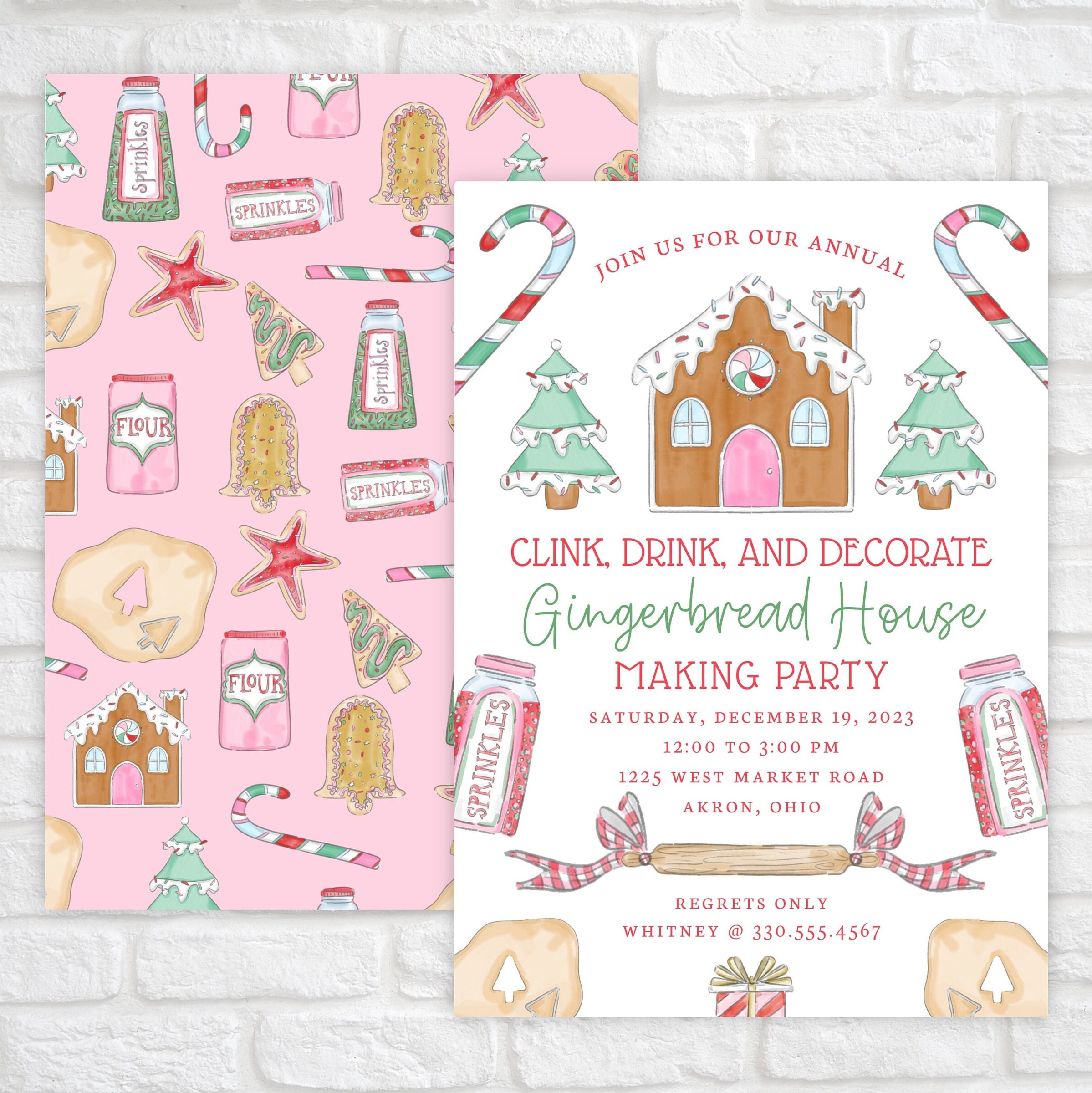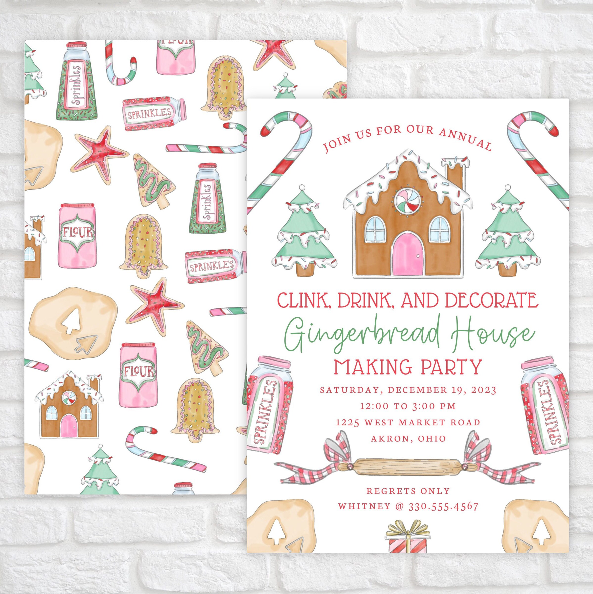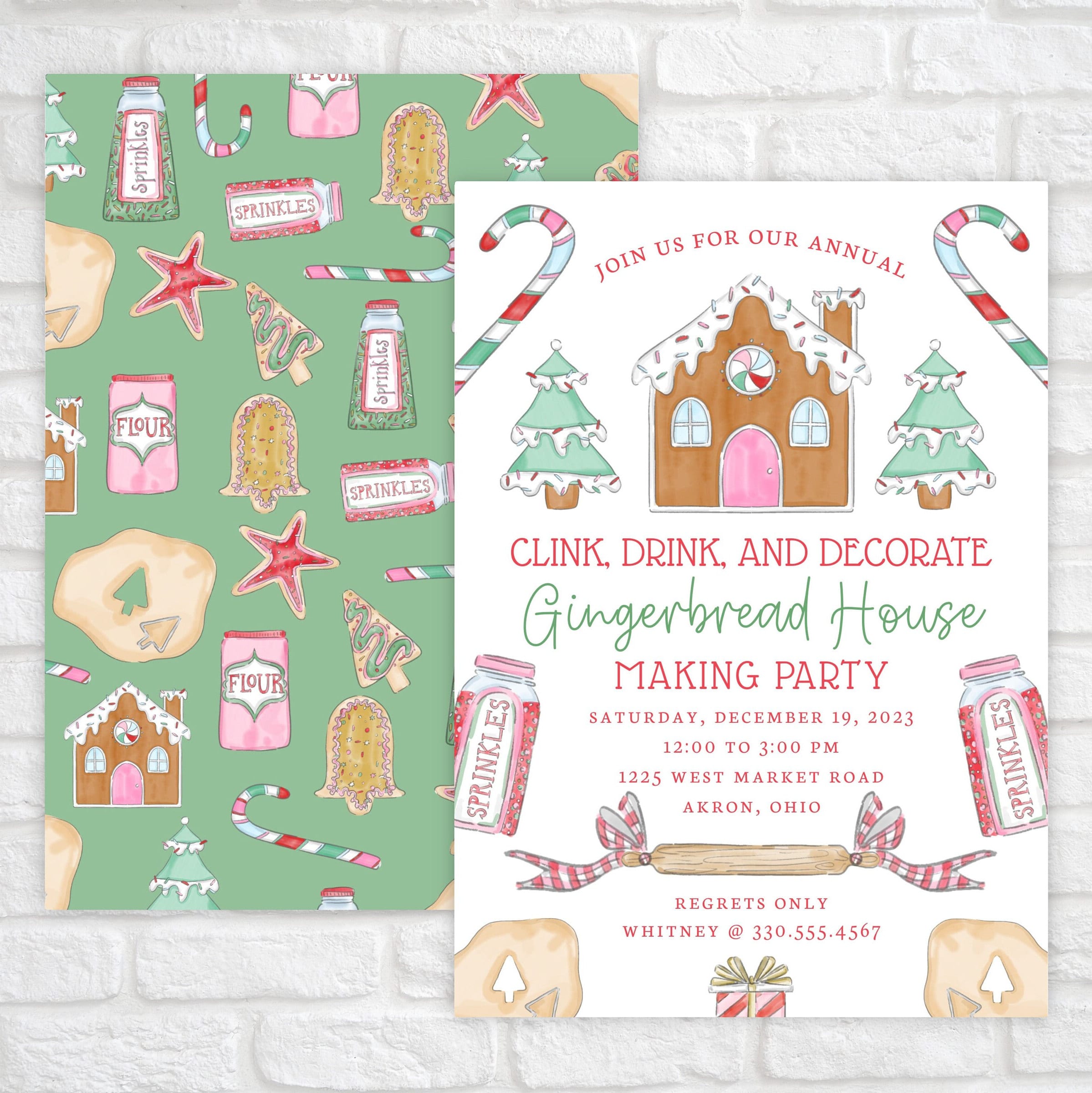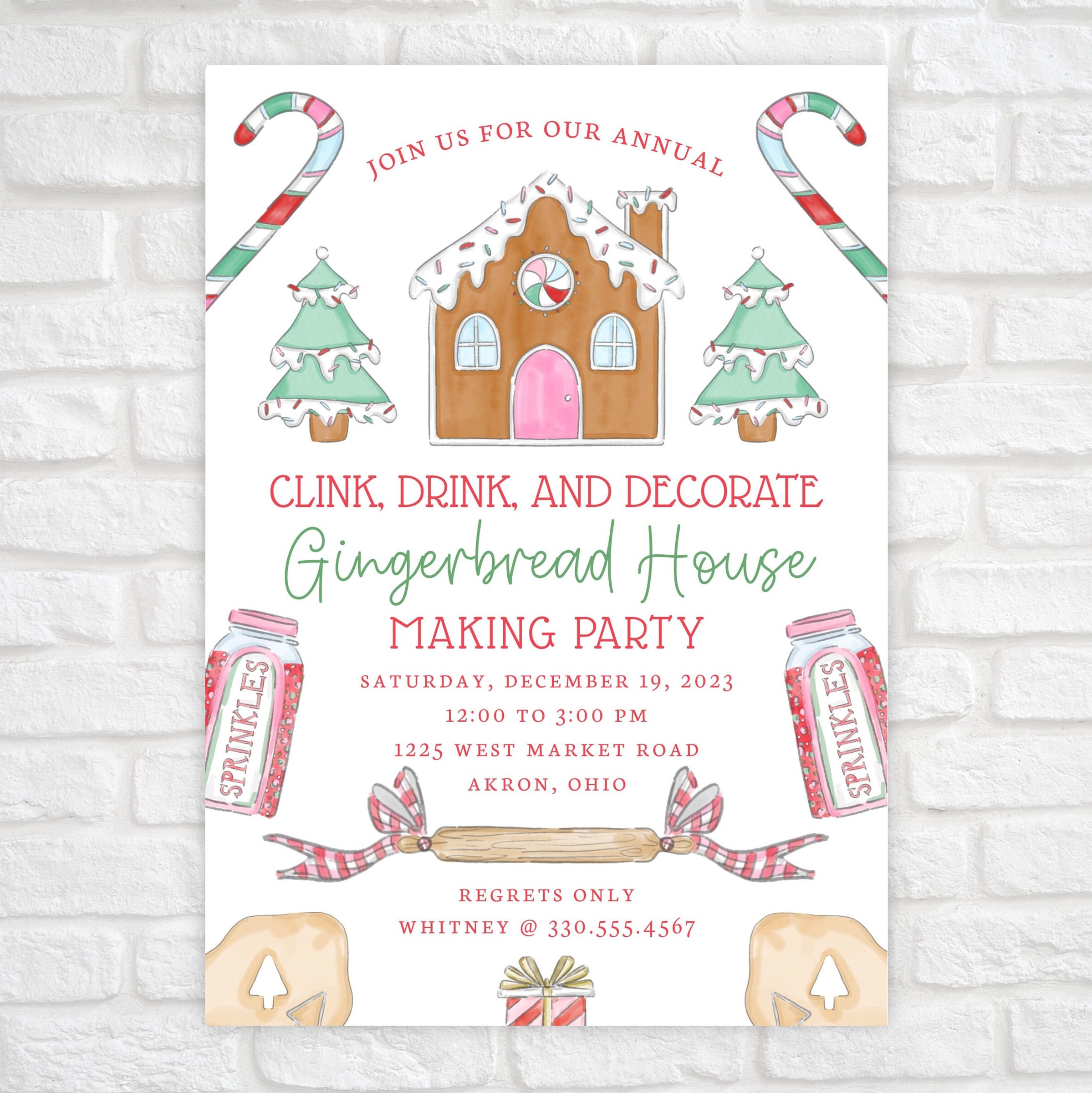 Personalize your 5"x7" gingerbread house making Christmas party invitation template right from home. Easily self-edit your invitations, then download and print!