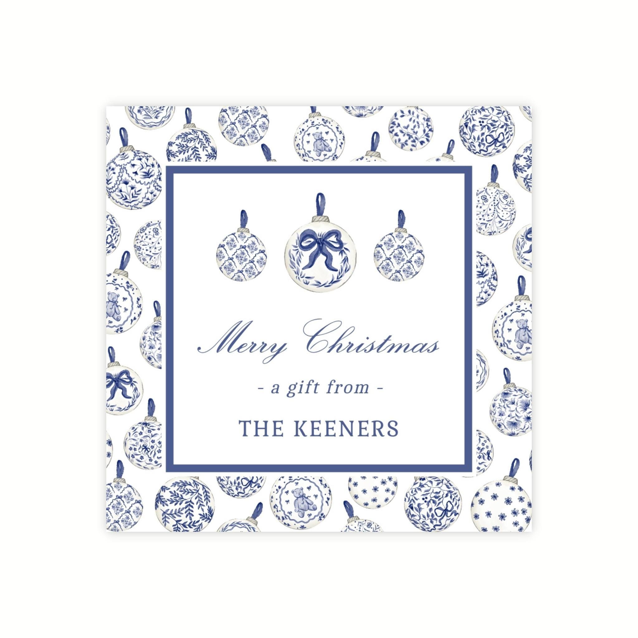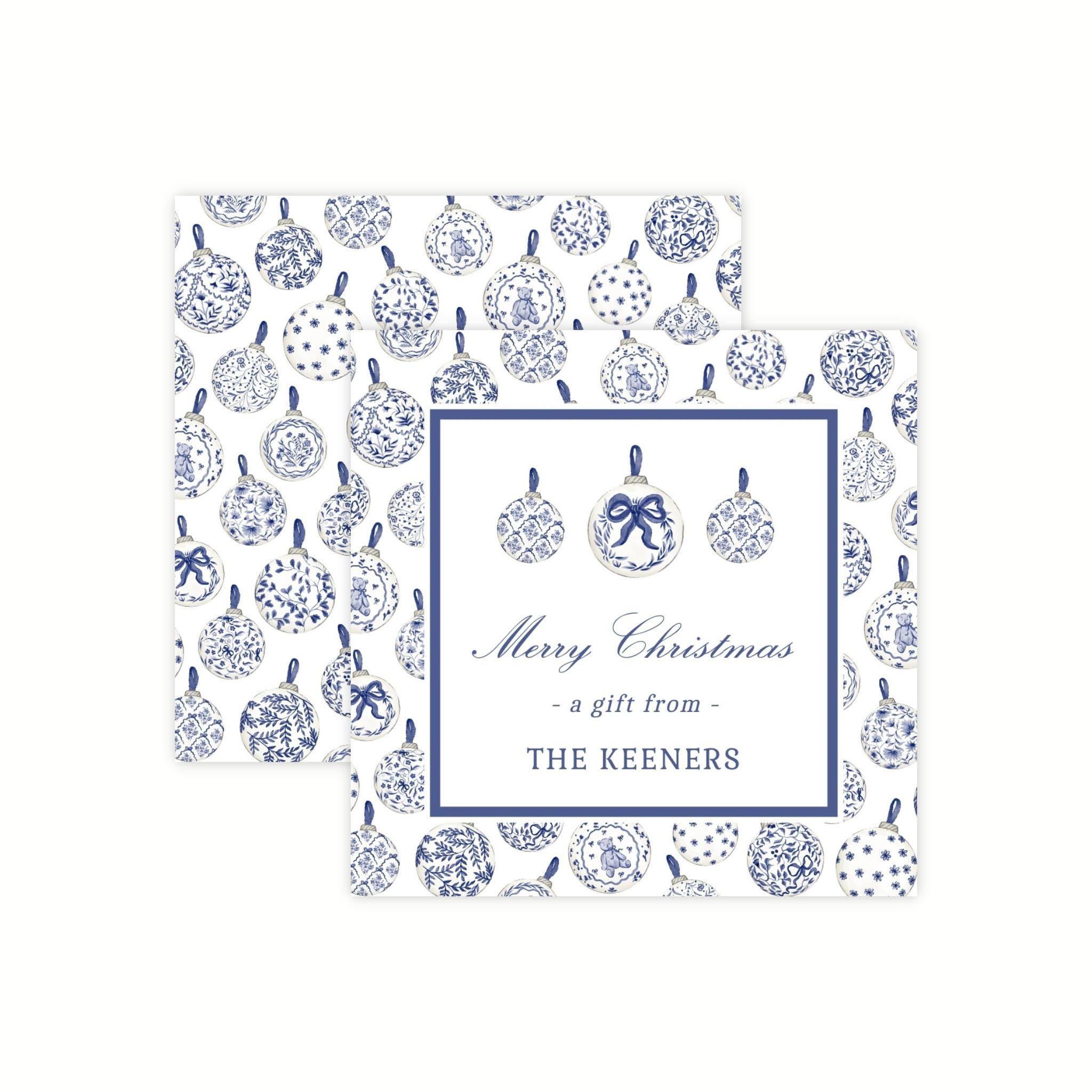 Editable 3"x3" Christmas gift tag, featuring a blue and white chinoiserie ornament pattern, perfect for using with all your holiday gift giving! Simply personalize your tag, download and print right from home.