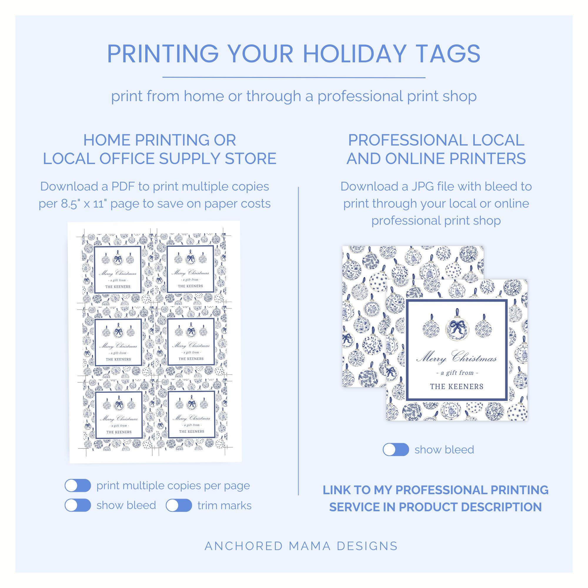 Anchored Mama Designs offers professional printing for cards and tags. This upgrade can be located in the Printing Services section of our shop. We partner with a professional printing company to provide beautifully printed products using 120 lb. Mohawk Eggshell Ultra White paper.