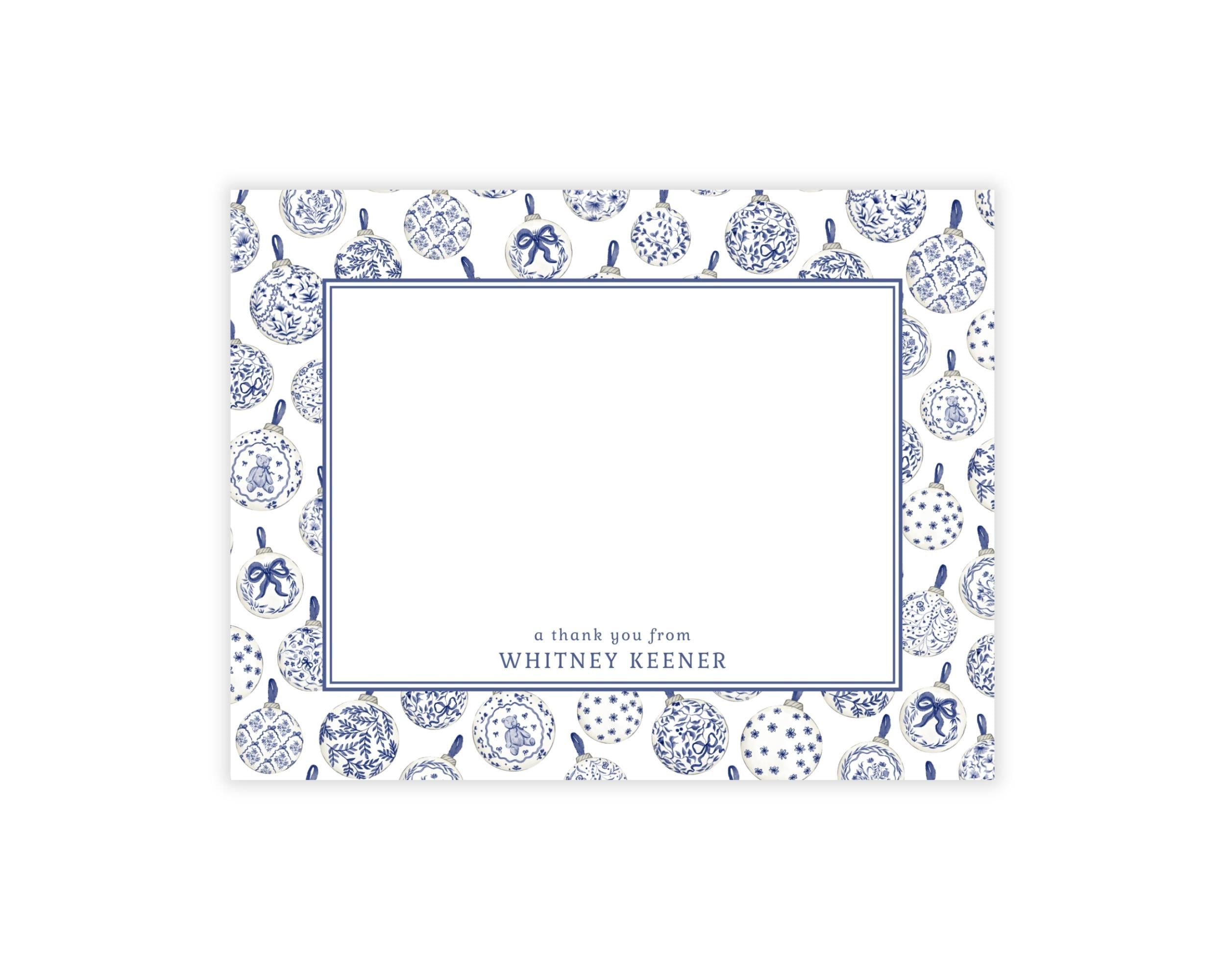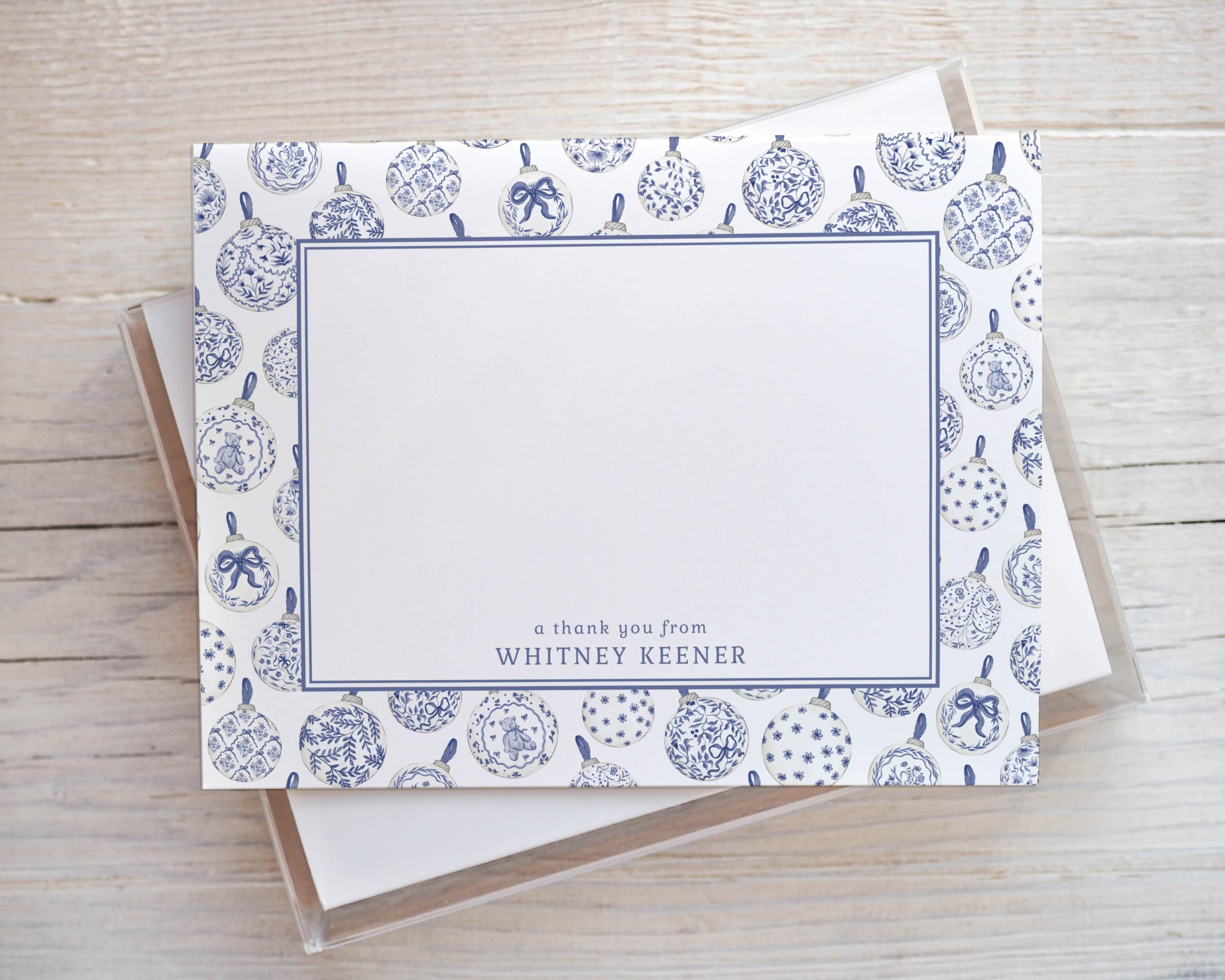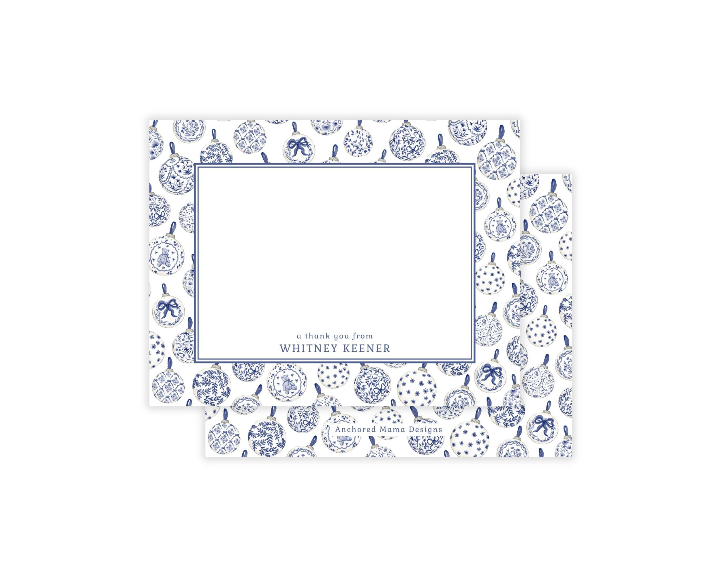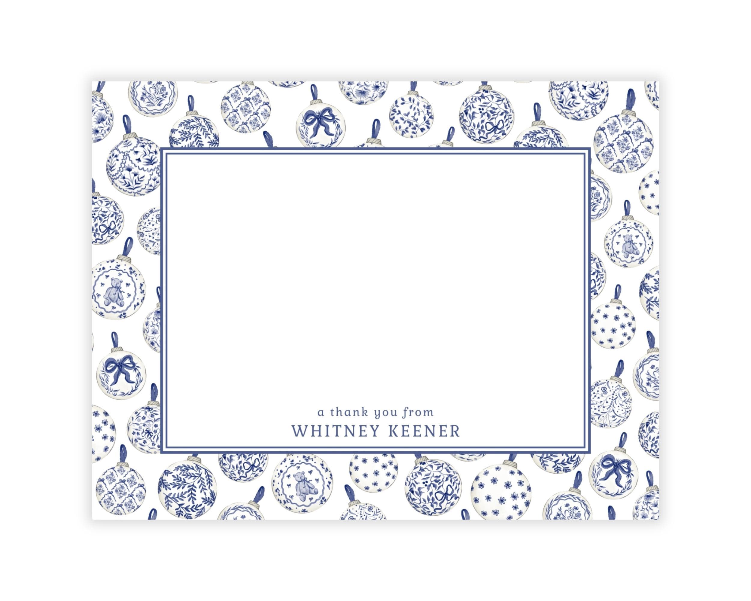 Send stylish notes with our 5.5" x 4.25" (A2) personalized stationery, featuring a blue and white chinoiserie ornament pattern with personalized name -- an elegant, timeless design for all.