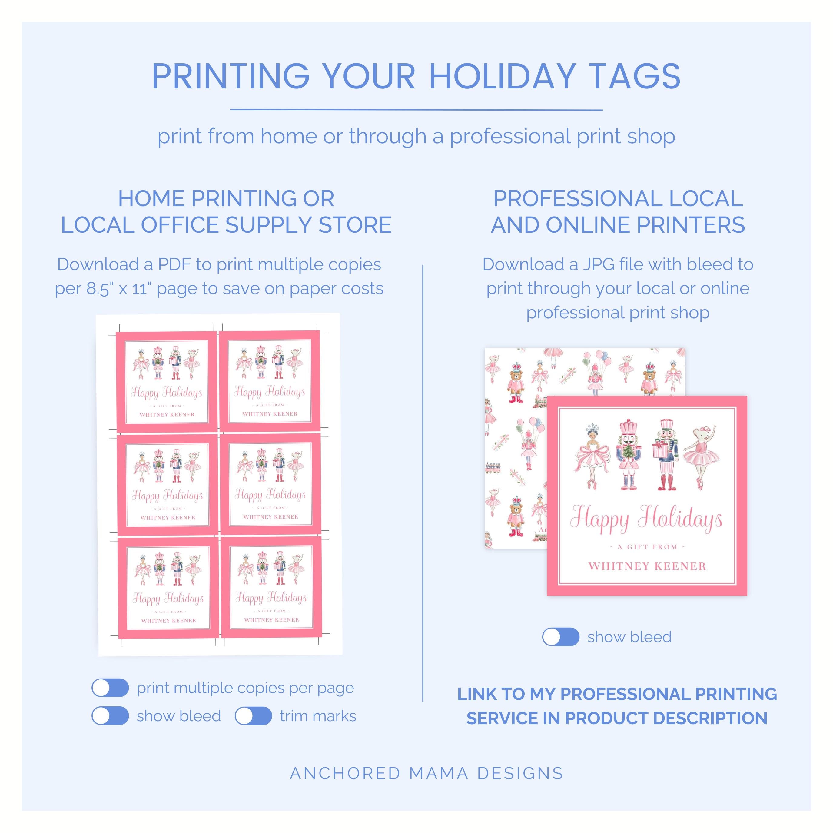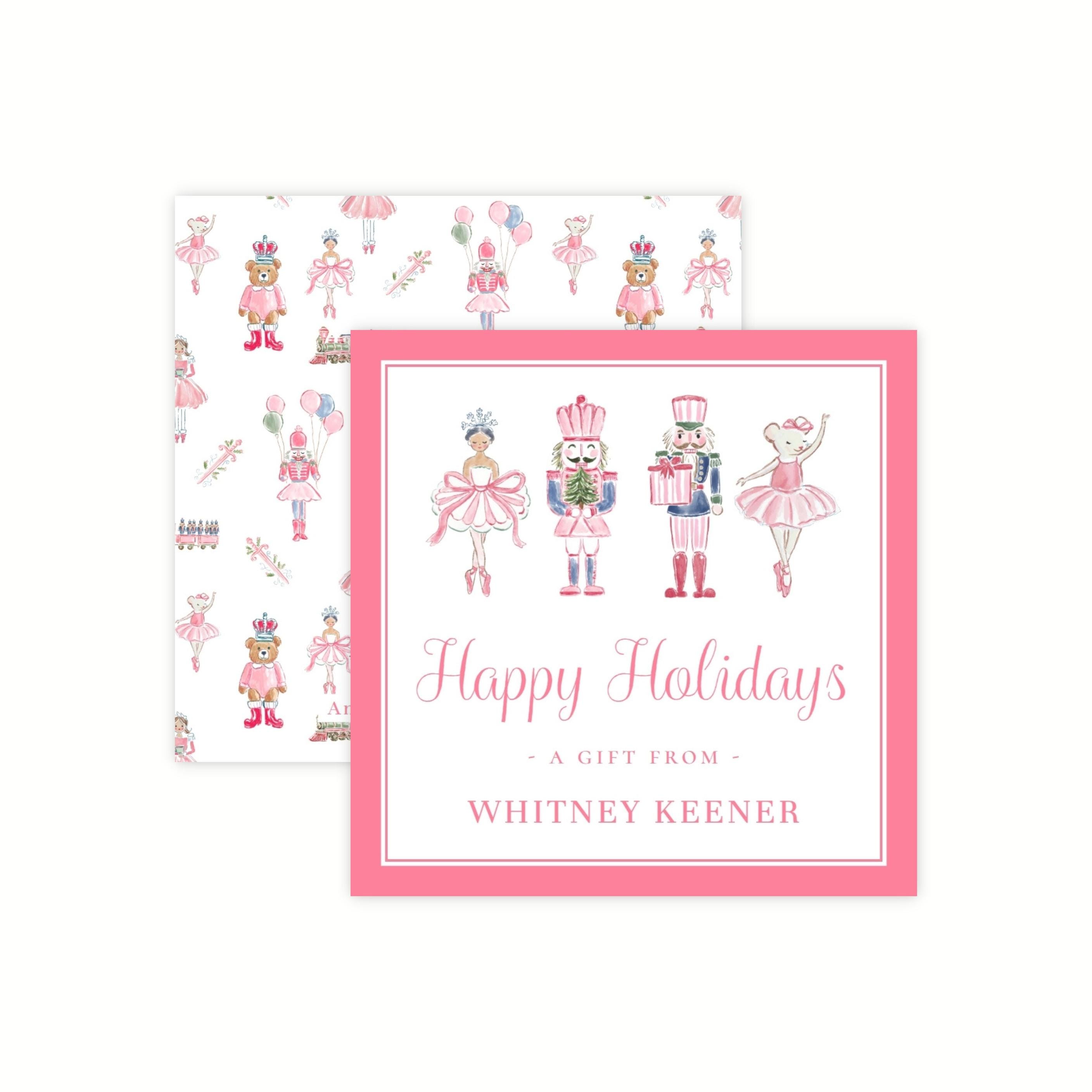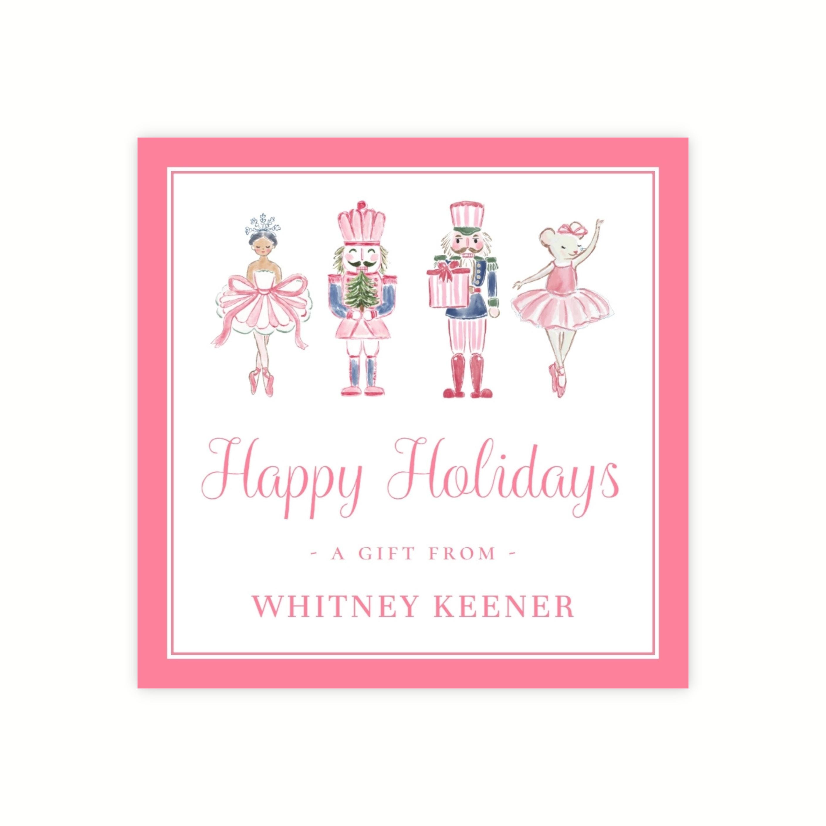 Editable 3"x3" Christmas gift tag, featuring pink nutcracker artwork, perfect for using with all your holiday gift giving! Simply personalize your tag, download and print right from home.
